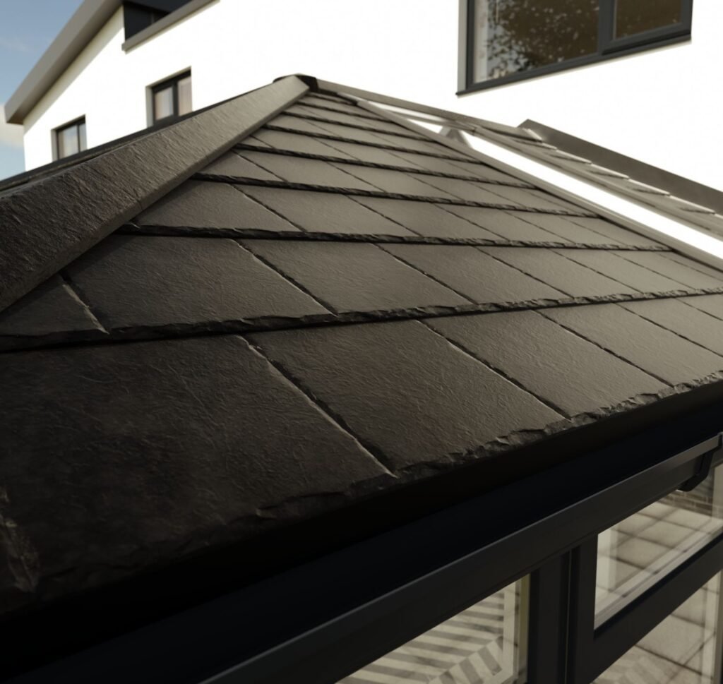 Our lightweight roofing tiles are ideal for conservatory roof upgrades keeping weight to a minimum. Weighing in at just 8.5kg per m2, the innovative tile structure is 80% lighter than traditional roof slates without compromising any durability. Their natural slate finish mirrors traditional build roofs adding tremendous kerb appeal.